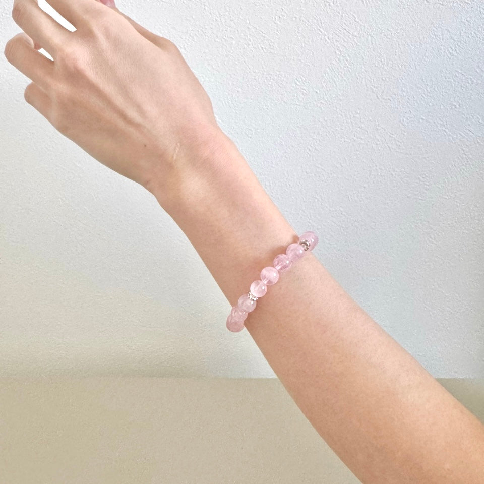このローズクォーツのブレスレットは、あなたの心に咲く小さな愛の花。